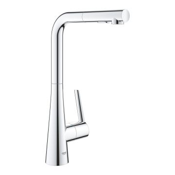 Baterie bucatarie cu dus extractibil, Titanium, crom lucios, Ramon Soler