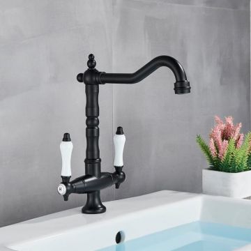 Baterie bucatarie Rea Castor, cu 2 funcții de curgere a apei, negru mat
