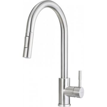 Baterie chiuveta bucatarie cu dus extractibil Deante Olfato, otel slefuit