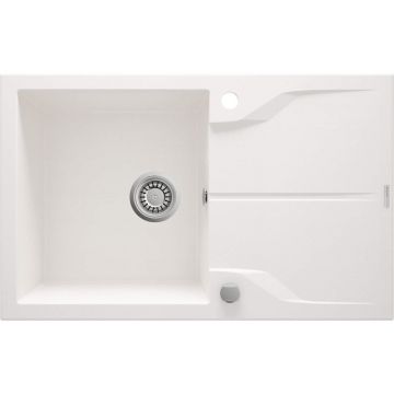 Chiuveta bucatarie compozit alba cu picurator si ventil pop-up Deante Eridan
