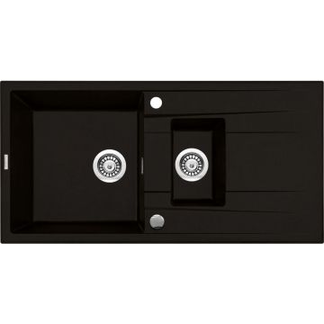 Chiuveta bucatarie compozit doua cuve si picurator, negru mat, Deante Magnetic